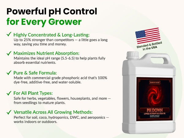 Those options are inconsistent and less stable. Household acids lack the strength and precision required for reliable pH control. Humboldts Secret pH Down for soil offers stronger, measurable results with less product and no unwanted TDS spikes.