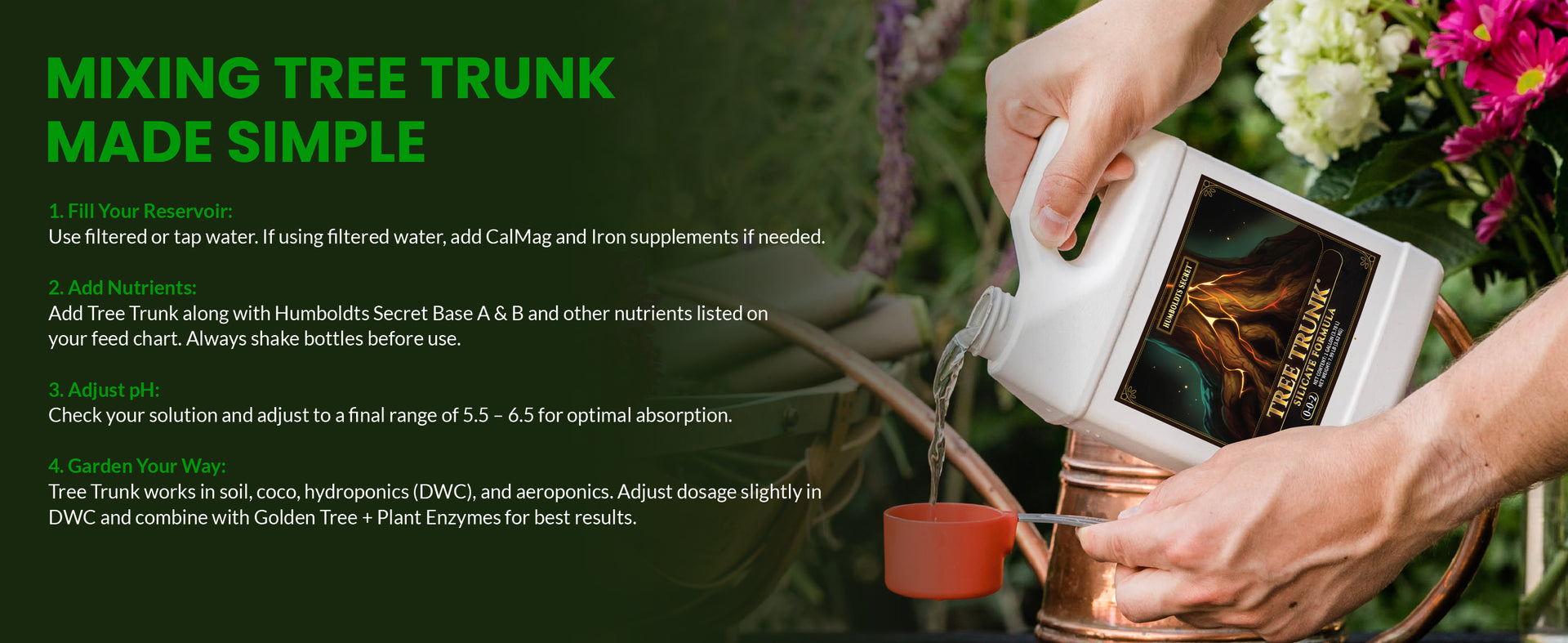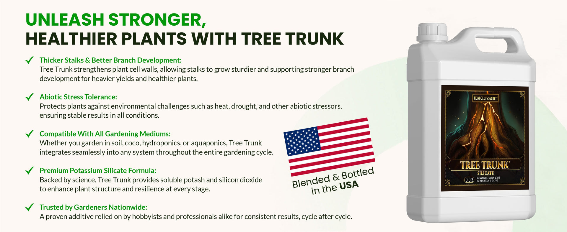Over one hundred thousand gardeners trust Humboldts Secret. Tree Trunk is safe, potent, and powerful — giving your plants the support they need to stand taller, carry heavier yields, and thrive..