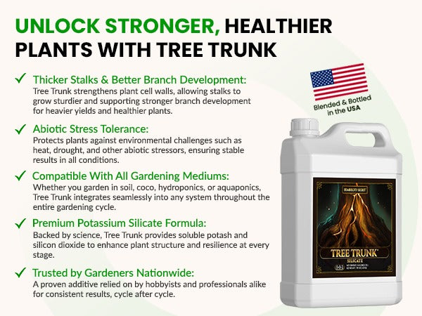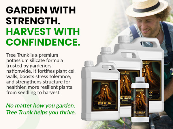 Flimsy branches mean wasted potential — smaller yields, broken limbs, and more support work. Tree Trunk strengthens at the structure, giving your plants the resilience they need to support your biggest harvest yet..